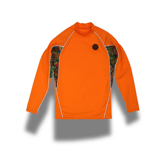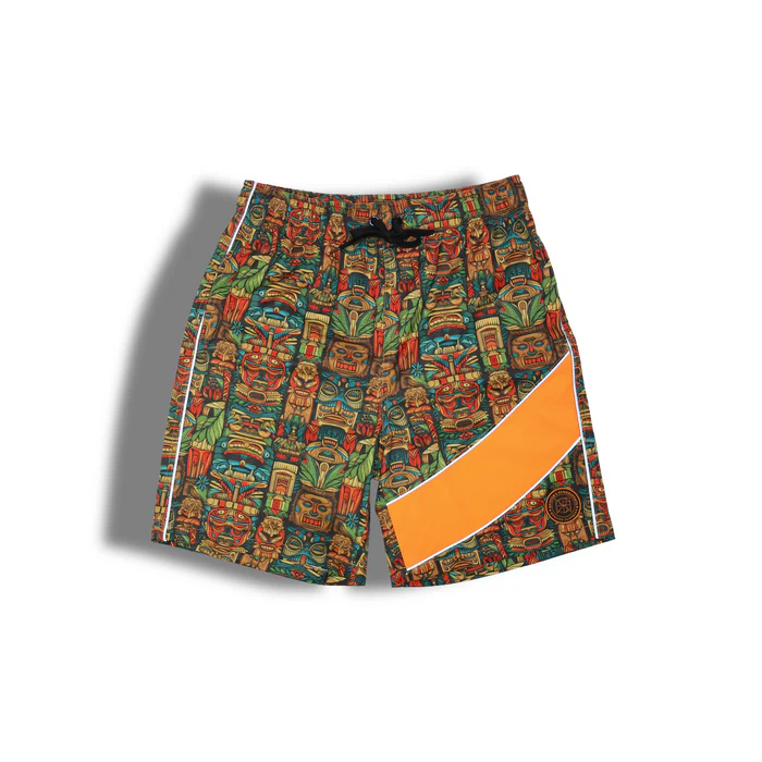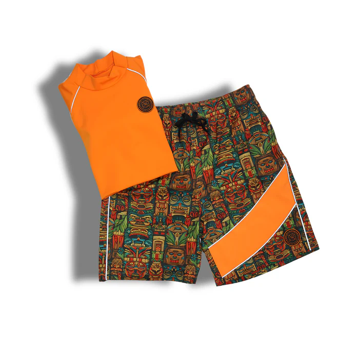 These swim trunks feature reflective piping for added visibility and style. The rash guard provides protection from the sun and keeps you stylish while catching some waves. The swim trunks are lined with 100% polyester net lining for added comfort and support.