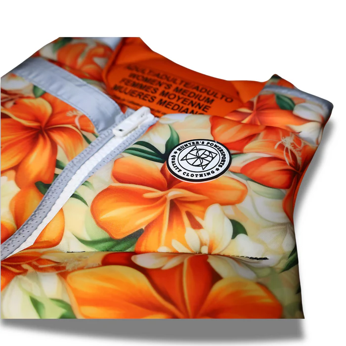 Elevate your water safety gear with our Orange and Yellow Tropical Floral Print Women’s Reflective Type III Life Vest – where safety, style, and quality converge for an unforgettable aquatic experience. Dive in with confidence and flair!